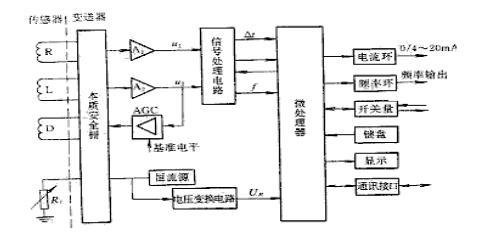 由微处理器直接驱动电流环和频率环部件,分别输出0/4~20mA标准电流信号和频率信号,标准电流和频率信号所代表的被测量和范围均可以组态。